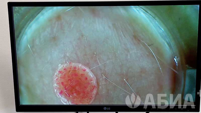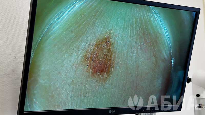 С помощью видео-дерматоскопа врач оценивает параметры новообразования по системе АККОРД меланомы: