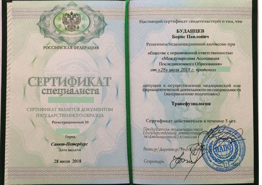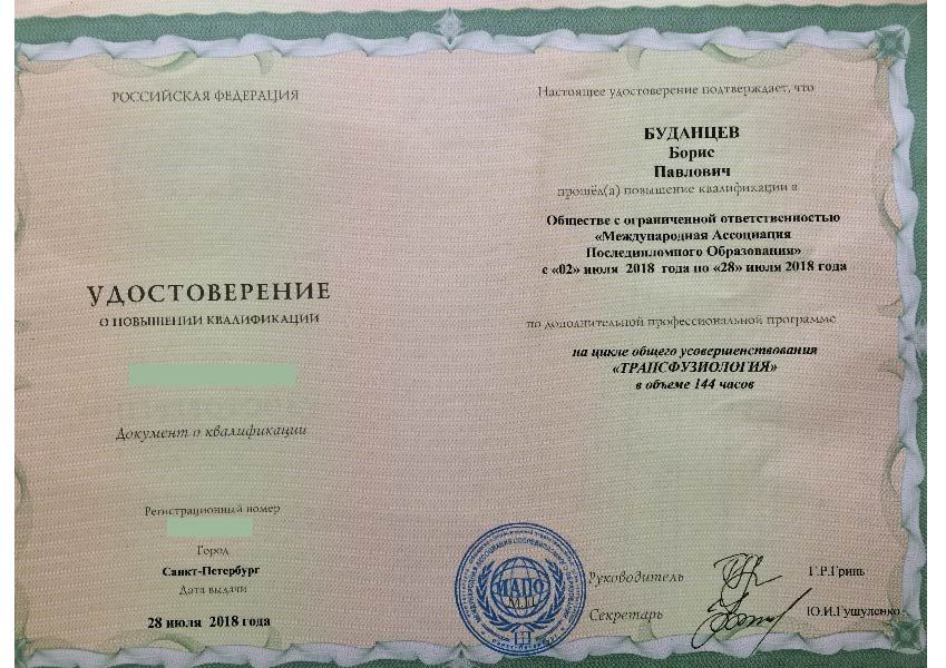 Борис Павлович окончил Военно-Медицинскую академию им. С.М. Кирова по специальности "лечебное дело" в 1996 году. Первичную специализацию по анестезиологии прошел на базе ВМА в 1996-1997 гг. Профессиональную переподготовку по трансфузиологии прошел на базе СПб МАПО в 2006 году.