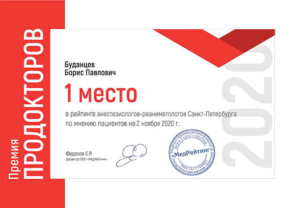 15 ноября 2019 года у меня была сложная операция. Которая длилась очень долго. Семь с половиной часов наркоза. И мое здоровье, и моя жизнь зависели не только от хирургов, которые проводили операцию, но так же от врача анестезиолога. Мне повезло. Я оказалась в руках профессионального врача анестезиолога – реаниматолога Буданцева Бориса Павловича. Не равнодушного к своему делу и здоровью пациента. Этот отзыв будет очень длинным, если я буду расписывать обо всей подготовке. О том, как он дважды не допускал меня к операции, считая, что могут быть осложнения. О том какая сложная анестезия мне проводилась и т.д. Одно могу сказать, если вашим врачом анестезиологом будет Буданцев Борис Павлович, то можете быть уверенными в том, что проснетесь. Что выход из наркоза будет легким. А состояние здоровья в норме. С благодарностью к нему, Ольга