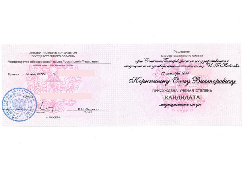 С 2013 по 2016 гг проходил докторантуру ФГБУ «НМИЦ им. В.А. Алмазова» Минздрава России.