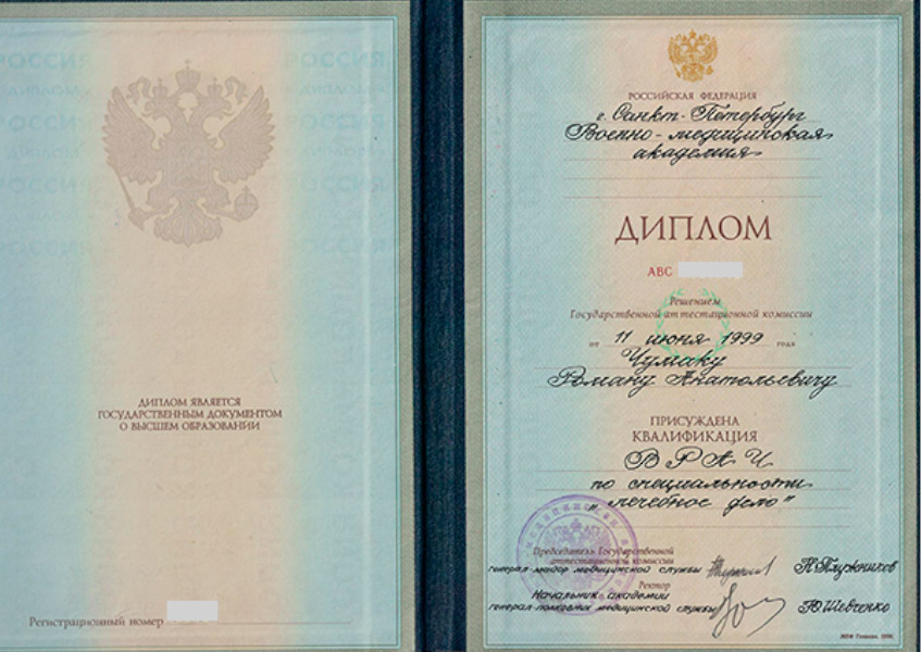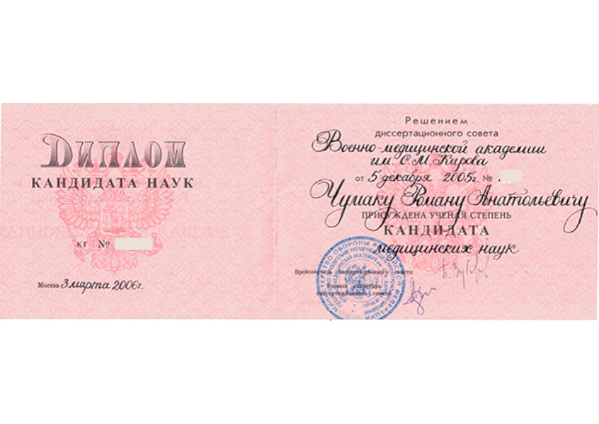 Чумак Роман Анатольевич с отличием закончил Военно-медицинскую академию имени С.М. Кирова по специальности «лечебное дело» в 1999 году. До 2000 года обучался в интернатуре, прошёл ординатуру и адъюнктуру по специальности «хирургия».