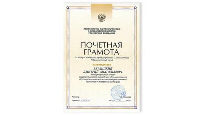 Ветлицкий Дмитрий Анатольевич окончил с отличием лечебный факультет Ставропольского государственного медицинского института в 1988 году. Прошел интернатуру в 1989 году по специальности акушерство-гинекология. В 1995 году прошел профессиональную переподготовку по специальности «Дерматовенерология».