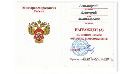 Награжден знаком «Отличник здравоохранения» и почетной грамотой «За заслуги в области здравоохранения и многолетний добросовестный труд».