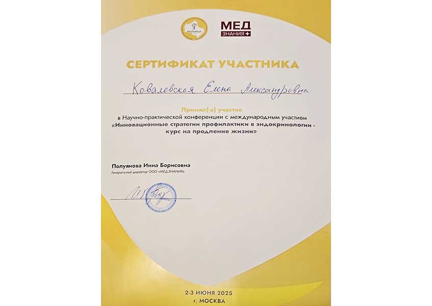 Состоит в Ассоциации эндокринологов Петербурга, Европейской Тиреодологической Ассоциации.