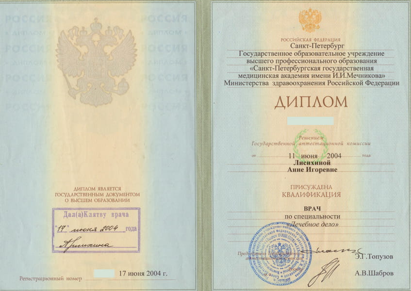 - 2023 - профессиональная переподготовка «Диетология» (ФГБОУВО «Cанкт-Петербургский государственный университет»)