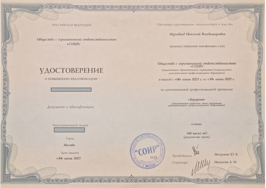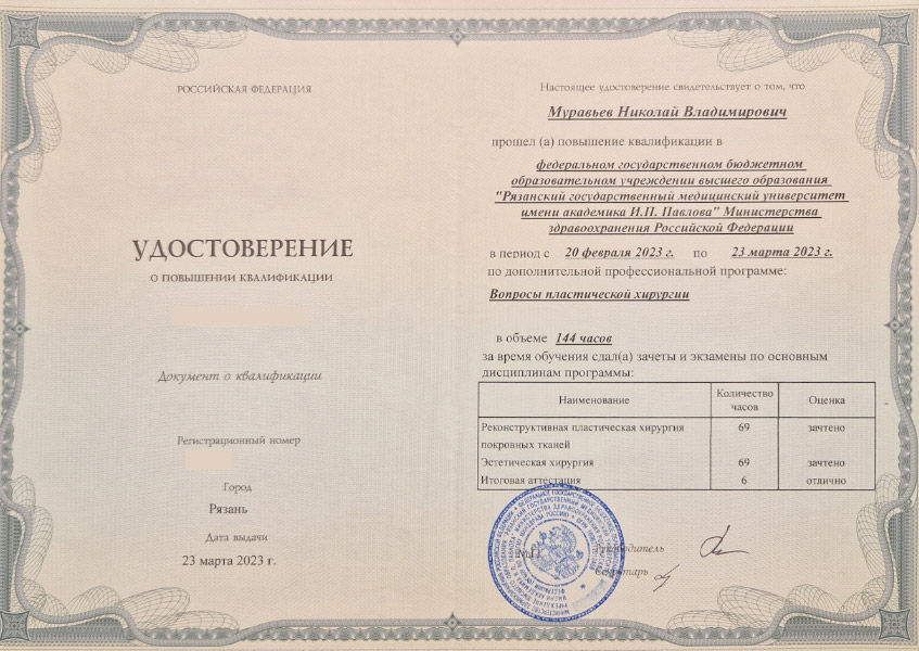 Николай Владимирович Муравьёв — один из ведущих специалистов по эстетической и реконструктивной хирургии лица и тела. Его имя ассоциируется с высоким профессионализмом, вниманием к деталям и естественными и гармоничными результатами.