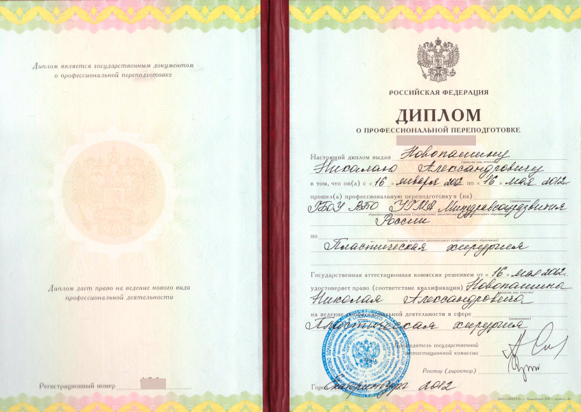 Николай Александрович занимается пластической хирургией более 12 лет, имеет большой опыт работы в сложных темах пластики: эндоскопические и SMAS-подтяжки лица, эндоскопическое увеличение груди, работа с полиуретановыми имплантами, подтяжки тела после бариатрических операций.
