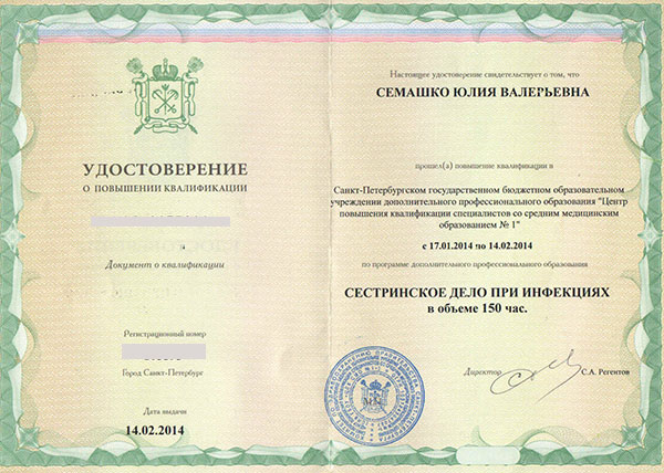 Семашко Юлия Валерьевна в 1997 году окончила Санкт-Петербургское медицинское училище №9.