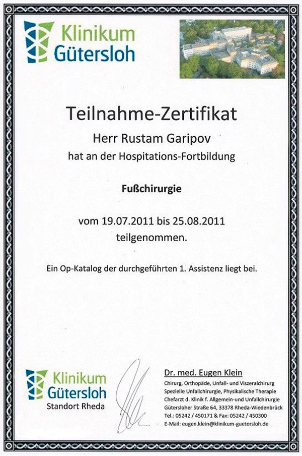 Хочу выразить чувство глубокой благодарности Гарипову Рустаму Расимовичу за его профессиональную работу. Вот уж точно, что у врача золотые руки!