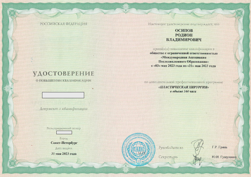 Осипов Родион Владимирович — пластический и реконструктивный хирург с более чем 10-летней врачебной практикой.