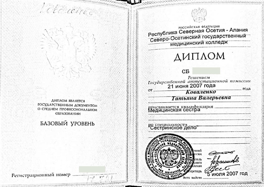 Гаева Татьяна Валерьевна в 2007 г. окончила Северо-Осетинский медицинский колледж по специальности «Сестринское дело».