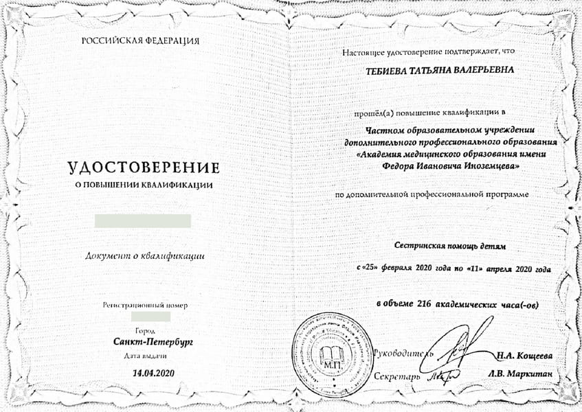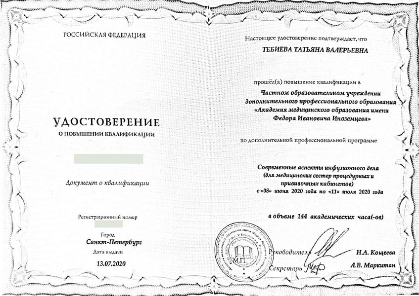 Татьяна Валерьевна регулярно проходит подтверждения и повышения квалификации: