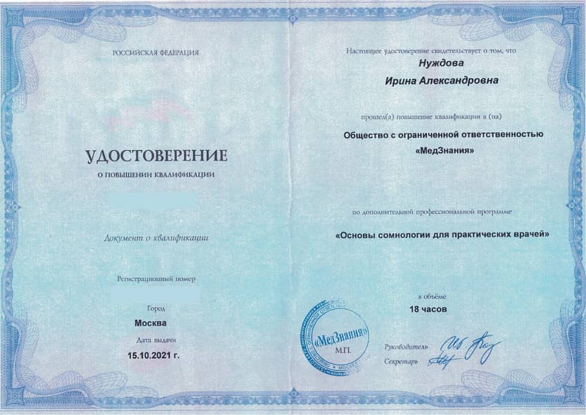 | Консультация врача, психолога, сомнолога по растройствам сна (60 мин.), Нуждова И.А. | 5200 |