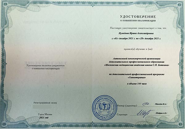 | Консультация гипнотерапевта перед сессией гипнотерапии (30 мин.), Нуждова И.А.. | 1700 |