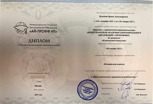 Нуждова Ирина Александровна для меня стала тем специалистом, которому я смогла довериться с первого сеанса. Было легко говорить на любые темы. Ирина Александровна мягко, но настойчиво направляет, помогает посмотреть туда, где можно найти ответы на те вопросы, с которыми к ней обращаешься. После одного из сеансов, где работали с определённым запросом, у меня было невероятное ощущение лёгкости, покоя, умиротворения. И главное, Ирина Александровна объяснила, что делать, чтобы вернуться в это состояние, если вдруг "потеряюсь". Рада, что решила обратиться именно к ней и благодарна Ирине Александровне за результат!