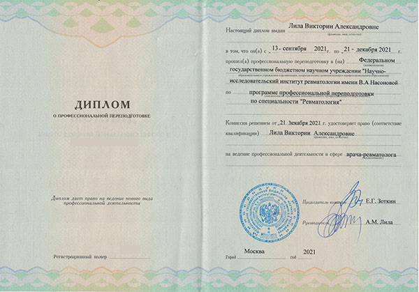 Имеет опыт работы в стационаре с больными ревматологического профиля с необходимостью интенсификации лечения и назначения генно-инженерных биологических препаратов.