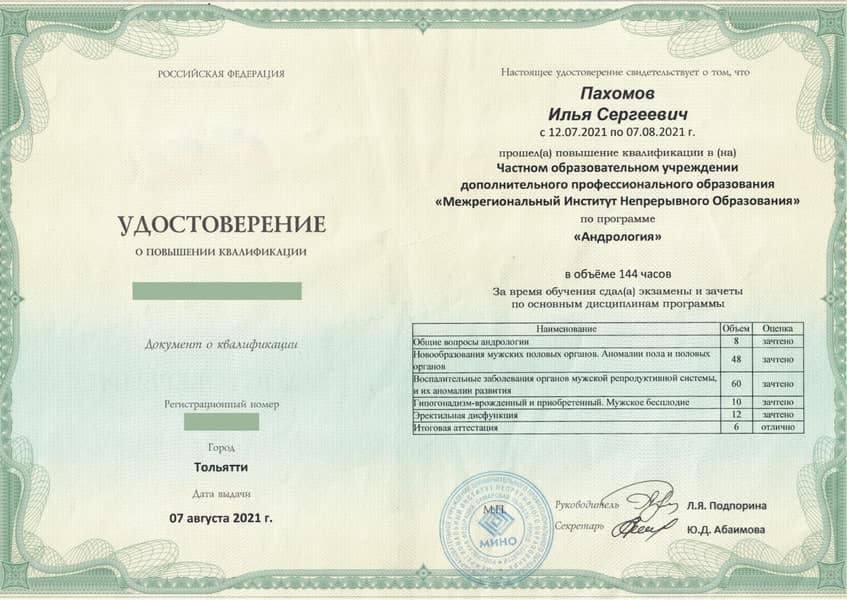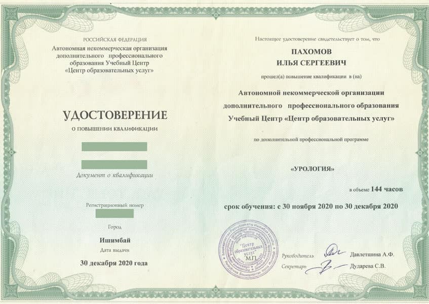 Регулярно проходит курсы повышения квалификации по эндоурологии, лапароскопической урологии, андрологии, участвует в профессиональных конференциях и семинарах.