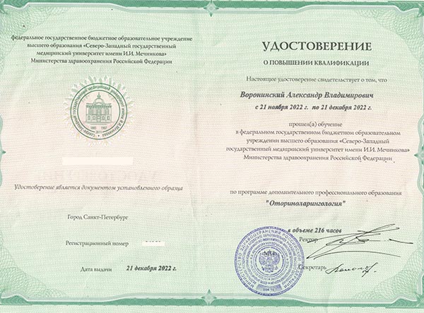 ЛОР Воронинский А.В. - замечательный врач, высокопрофессиональный. Результаты лечения "на лицо", всегда проблемы прошли, главное слушаться специалиста.