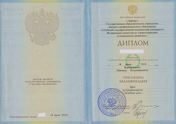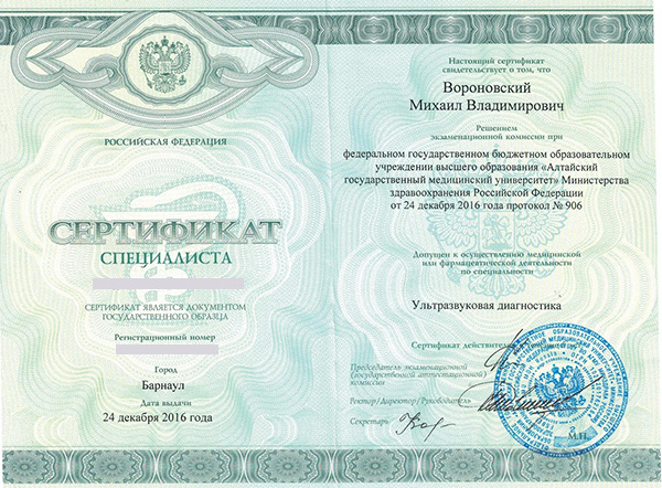 Вороновский Михаил Владимирович в 2010 году окончил Алтайский государственный медицинский университет (г. Барнаул), специальность «Лечебное дело». Там же, в 2011 году прошел интернатуру по клинической фармакологии с курсом терапии.