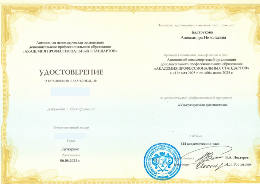 Была на УЗИ у Балтруковой Александры Николаевны, отличный врач. Рекомендую.
