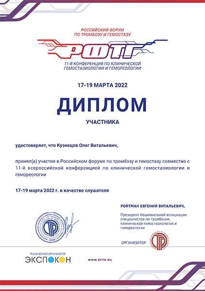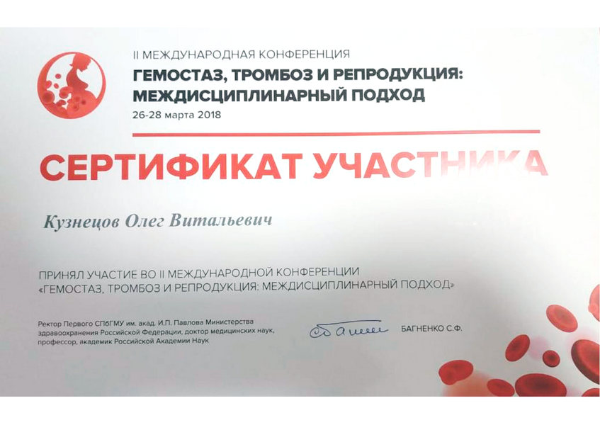26 апреля 2026 года выступил на V Форуме клиник репродуктивного здоровья «Формула Счастья» с лекцией «Планирование беременности и подготовка к ЭКО. Взгляд врача-гематолога».