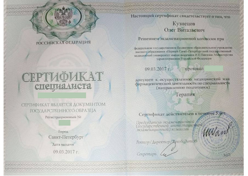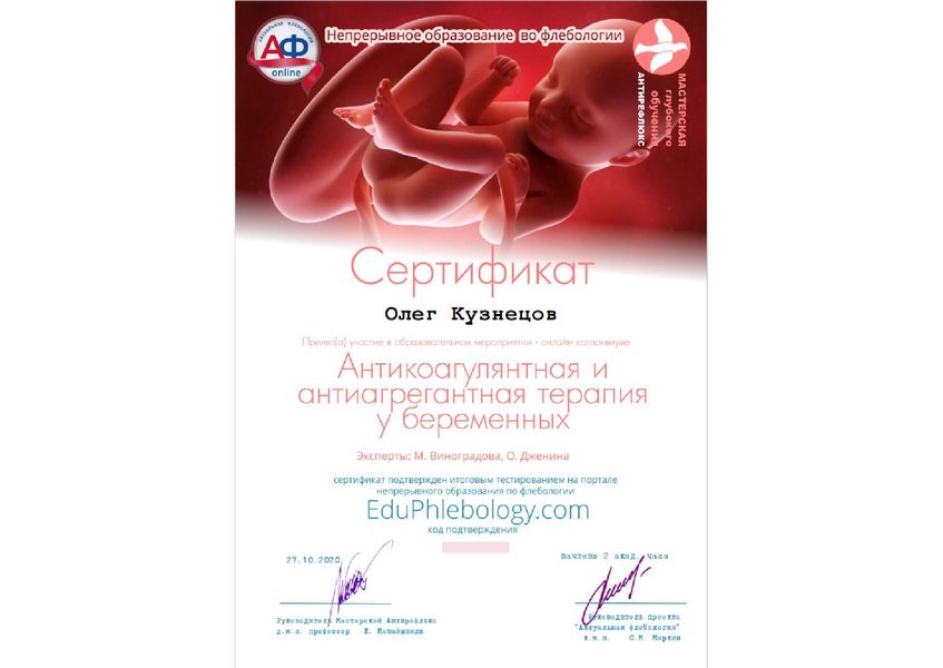 - 2020 - Сертификационный курс по специальности «Терапия»