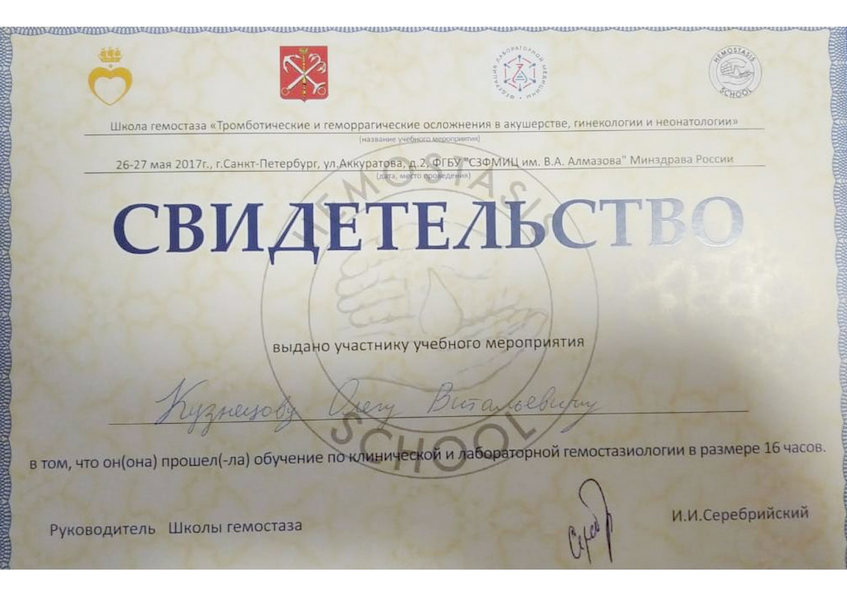 - 2017 - Гемофилия. Коагулопатии. ДВС-синдром. Неотложные мероприятия про кровотечениях и ДВС синдроме. Гемостаз (ПСПбГМУ им. И.П. Павлова Минздрава России)