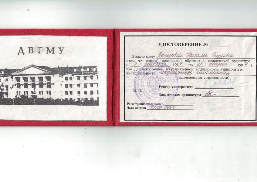 Врачебный стаж с 1997 года.