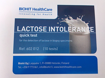 Непереносимость лактозы (гиполактазия) – это нарушение способности переваривать лактозу – основной сахар, входящий в состав молока. Это нарушение обусловлено снижением активности фермента лактазы, который образуется в тонком кишечнике. Только одна треть взрослой популяции всего мира сохраняет способность переваривать лактозу. Лактозная непереносимость может вызывать следующие симптомы со стороны пищеварительной системы: тошнота, метеоризм, вздутие живота, колики, боль, диарею. Пациенты, с симптомами лактазной недостаточности, как правило, направляются на ФГДС и тестирование на непереносимость лактозы.