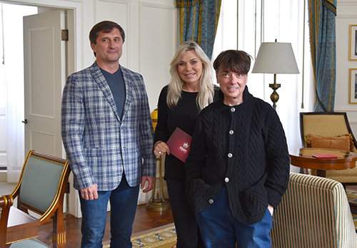 Александр Леонидович Адмакин лично поприветствовал чету Юдашкиных и поздравил с презентацией новой коллекции, вручив презенты от клиники «АБИА».